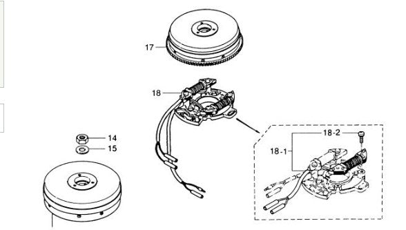 TOHATSU 3B2-06194-1 FLYWHEEL COMPLETE W/COIL PLATE ASSY (WITH ALTERNATOR) 3B2-06103-2 (NLA, OLD PRICE $428.00)